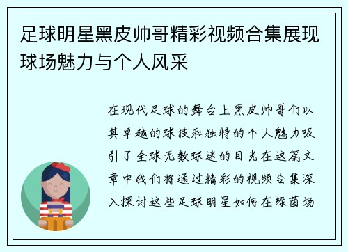 在足球这项全球最受欢迎的运动中,球员的形象不仅仅体现在他们的技术和表现上,发型也成为了展现个人风格的重要元素。尤其是那些身穿7号球衣的明星球员,他们的发型往往融合了经典与时尚,成为众多球迷追捧的对象。本文将以“7号足球明星发型大赏”为主题,从经典造型、时尚元素、文化影响及个性化表达四个方面深入探讨这些足球巨星们如何通过发型展示自己的独特魅力。通过对这些方面的分析,我们将揭示出7号球员们在场上场下所...
